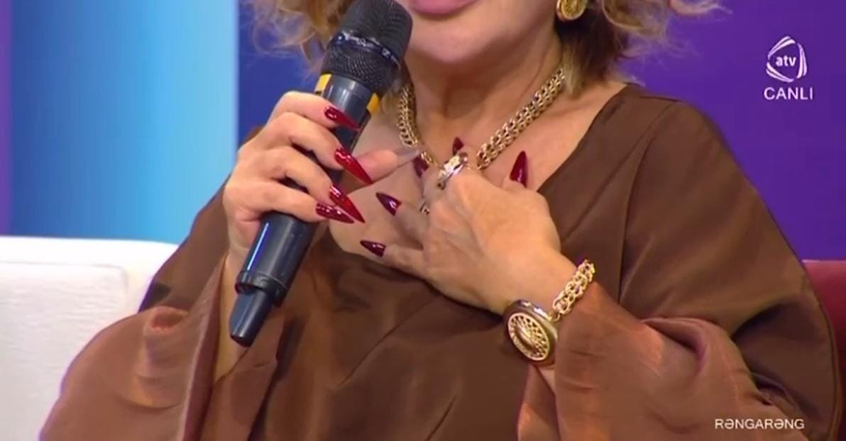 Medialive.az xəbər verir  ki, o, qonaq olduğu “Rəngarəng” verilişində hazırda üzərində istifadə etdiyi qızıl aksesuarların 12 min manat dəyərində olduğunu açıqlayıb.
